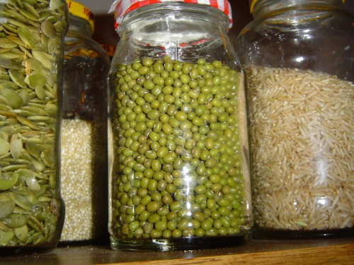 - Add water up to the same level with the green grams.