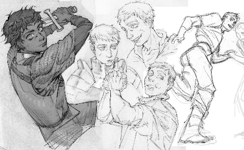 - kilgara mixed media element (scanned pencil work), shading that feels like pencil work, cool poses