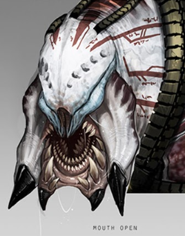 - Appearance: The mouth looks more like mandibles covering a mouth below it and eyes have a hardened plate of see-through exoskeleton over their eyes as shown below: