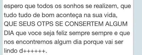 e aqui a gente pode reciclar basicamente tudo, porque depois de 2 anos eu continuo sentindo o mesmo, mas com um plus: eu te conheci. eu pude ouvir seu sotaque bem de pertinho e ver seu sorriso lindo bem de pertinho, ver como você é encantadora na minha frente, eu pude te abraçar, chorar pensando no quanto eu demoraria pra te ver de novo e ver suas lágrimas com a despedida que tivemos que dar. e com isso eu chego parte que eu queria chegar do meu texto: