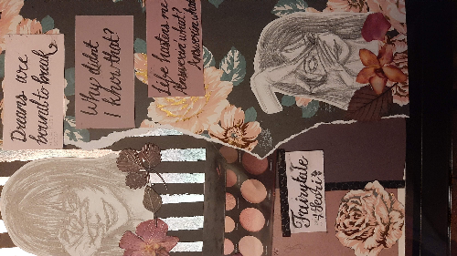 - Another Notebook page made with some little sketches I did, along with stickers and fun papers and all that. The lyrics are from Fairy Tale by Seori.
