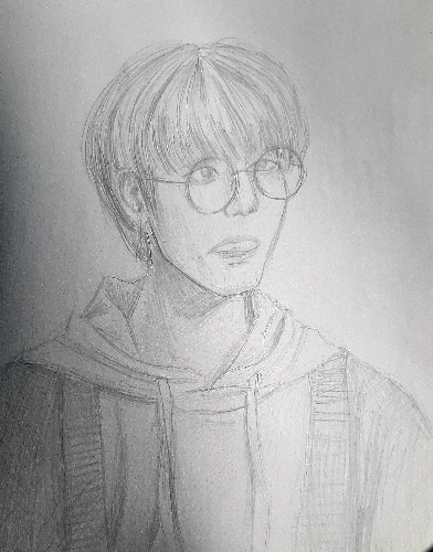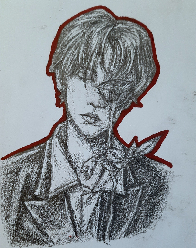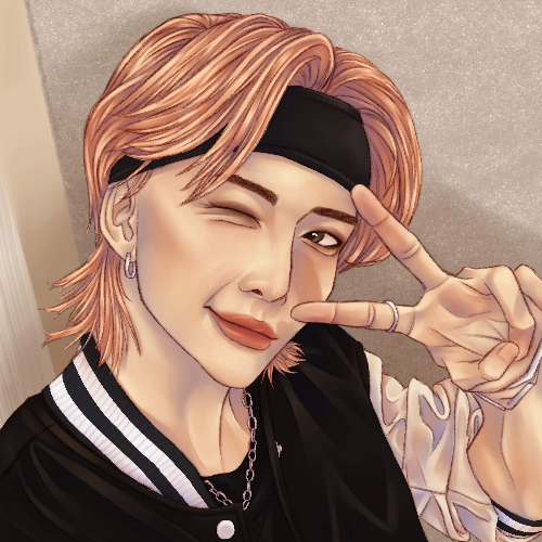 - Hyunjin fanart ^^ I am so so happy with this one. It was a lot easier for me to sketch out his face because I took the advice of an artist I like on Instagram and learned about planes of the face. It literally helped so much! I'm obsessed with Hyunjin's pink/peach hair, it's so cute.