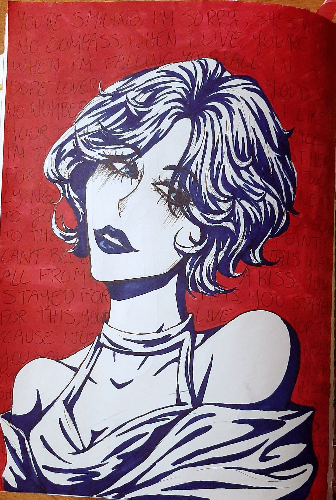 - This is a poster I made in graphics last semester based on the song Villain by Stella Jang. It's not amazing or anything, but I like it.