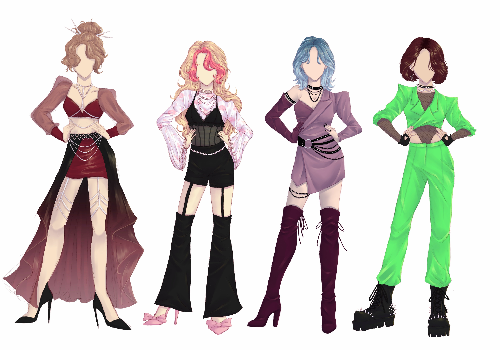 - These are some outfits I designed. I used mostly kpop stage outfits as references, and I like the way they look, I'd totally wear these.
