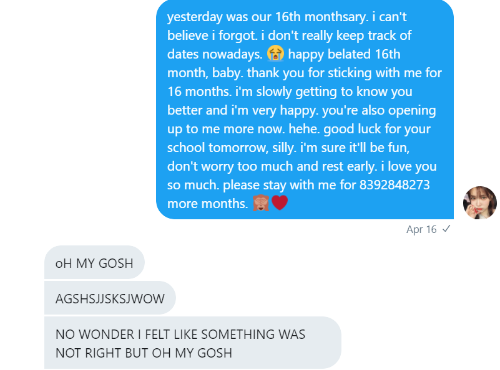 (when ashley & jayce both forgets their 16th month)