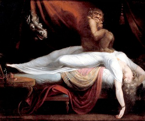 Rogelio de Egusquiza’s Tristan & Isolde Alexandre Cabanel’s Birth of Venus Henry Fuseli’s Nightmare Vincenz Georg Kininger’s Dream of Countess Marguerite of Flanders, based on Salvatore Viganò’s ballet Richard the Lionheart The Soul Hovering over the Body by William Blake for Robert Blair’s poem, The Grave Le déséquilibre amoureux by Colette Saint Yves Edward Gorey’s The Gilded Bat Alla Nazimova in Salomé Erté’s The Golden Pearls