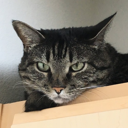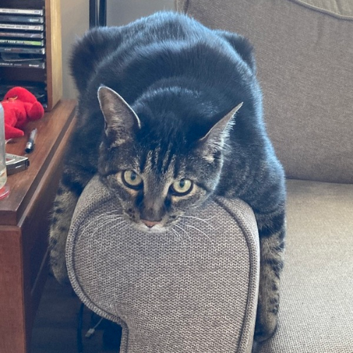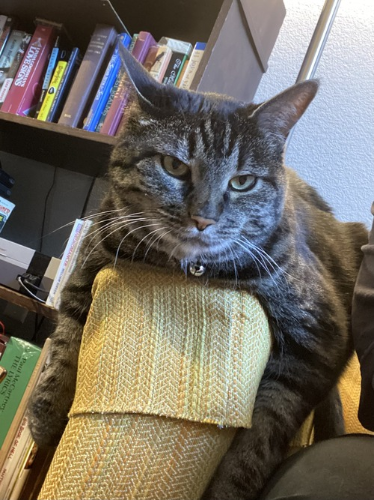 this is her favorite spot, on the arm of the couch