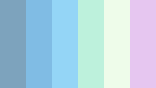 7da3bd ‧ 80bce4 ‧ 94d5f6 ‧ bdf1dc ‧ eefcea ‧ e6c6f0