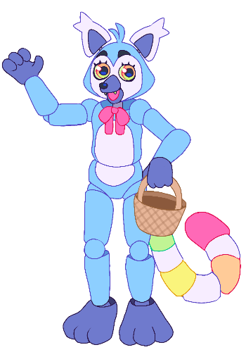 Callie is a mischievous pink and blue coyote, who's always wearing her iconic purple hat, mask, and cape! She LOVES candy, and often steals it away from people (namely Louis) She is quite the trickster, so watch out!