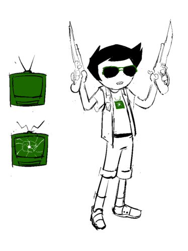 - ●His symbol is a Cathode TV for his love of movies and his disk collections. But this is then turned into a broken TV when his bullet ricochet back at him while strifing with his Bro. (That involved so many chains, clowns, bells and the goofiest hammer in existence)
