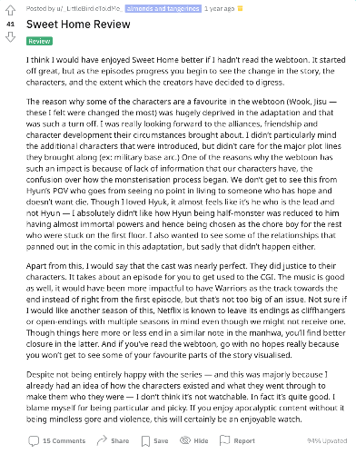 - a drama inspired by a review written in r/KDRAMA - Sweet Home
