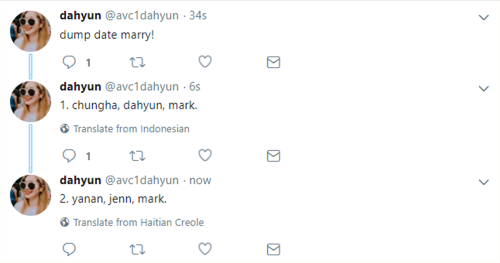 - 3. each player will then take a turn in listing three names, along with a shuffled ddm format.