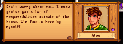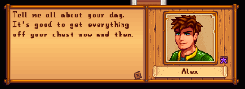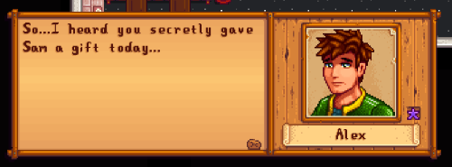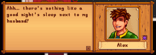 - This was... one save of mine where... I think I was going after Sam but changed my mind after being married to Sam on another save of mine. I kept getting (romance) replused with him and other things.. /: I do like Sam though... But yheaah, afterwards I just went with Alex. I really only want to give flowers to one person which is a next... newer... game I have yet to start. But I can't wait lol. <3 My game plays have been a mess, so I wanna start clean.
