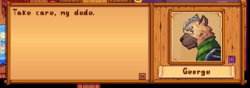 - I played around with the game stuff. My personal HC of Goegre is that when you become closer friends with him, he starts to pick up things you say. And one thing I have in mind that my character says, is that my dude meme. So instead of saying take care son sometimes, he says my dude. :b