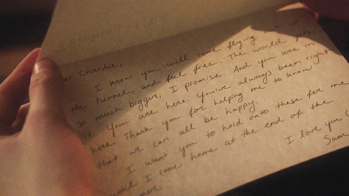 ❝I don't know if I will have the time to write any more letters because I might be too busy trying to participate. So if this does end up being the last letter, I just want you to know that I was in a bad place before I started high school, and you helped me. Even if you didn't know what I was talking about or know someone who's gone through it, you made me not feel alone. Because I know there are people who say all these things don't happen. And there are people who forget what it's like to be 16 when they turn 17. I know these will all be stories someday. And our pictures will become old photographs. We'll all become somebody's mom or dad. But right now these moments are not stories. This is happening. I am here and I am looking at her. And she is so beautiful. I can see it. This one moment when you know you're not a sad story. You are alive, and you stand up and see the lights on the buildings and everything that makes you wonder. And you're listening to that song and that drive with the people you love most in this world. And in this moment I swear, we are infinite.❞