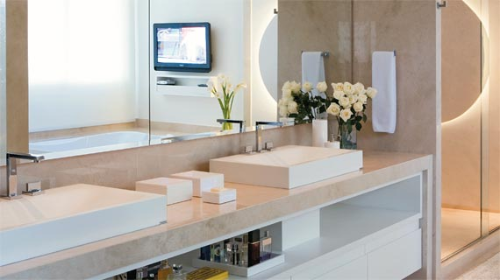 Parede espelhada, aumenta ambiente.