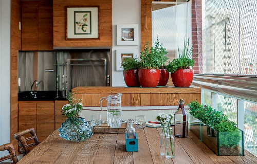 Para substituir possivel revestimento com papel de parede, procurar algum tipo de cerâmica com detalhes. Não usar pastilhas pois já estarão na cozinha e na área de serviço.Temperos frescos - usar tons quentes)