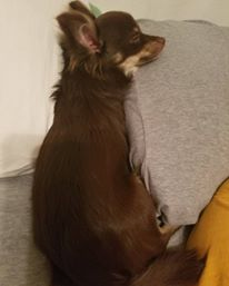 Mocha/Mochaccino ; 1 year old ; February 2nd ; Chihuahua ; Brown and tan fur ; Hazel/brown eyes ; Male