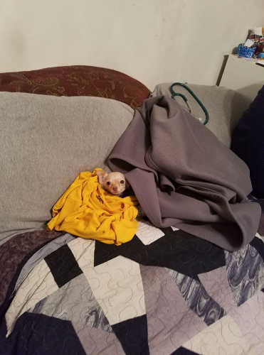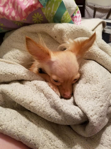 Macchi/Macchiato ; 3 years old (Deceased T-T) ; April 24th ; Chihuahua ; Blonde fur ; Brown eyes ; Female ; Had a large branch dropped on her by accident, likely had multiple bones broken.