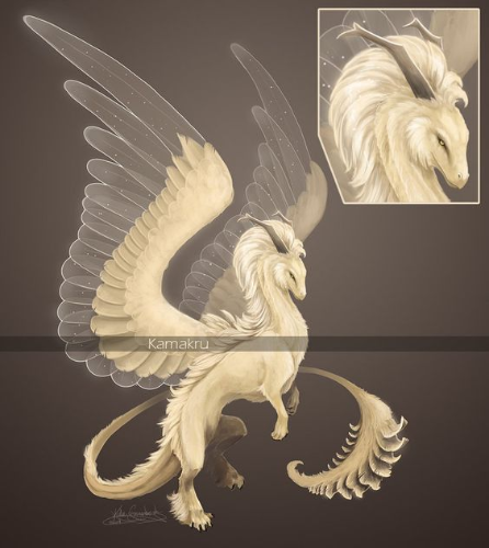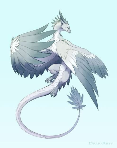 Dragon-like feathered beasts of many different colours, primarily white, gray, black, and blue. They have an interesting body, since they are able to change their size at will, though only able to grow depending on their age/if they would have already reached that size, and they can shrink to whatever size they want.
