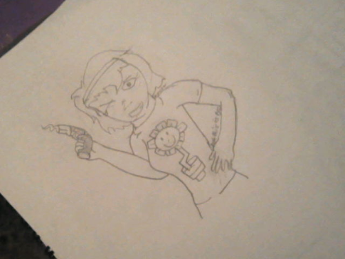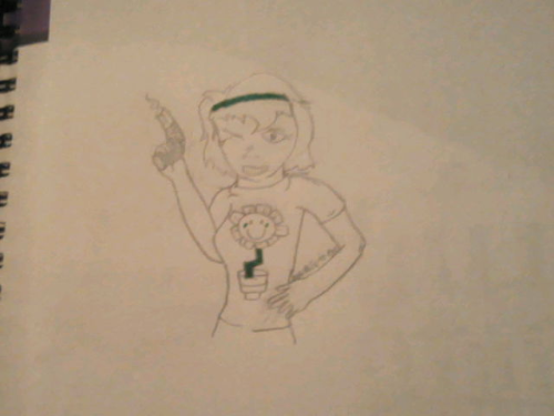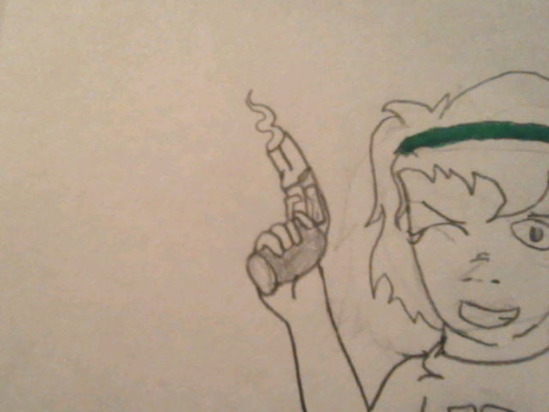 LMAO WHAT IS THIS?! ^ uncolored.. I actually used a reference for this and om g its so bad you can see the pain in her eye flower's good though, and the gun/left hand