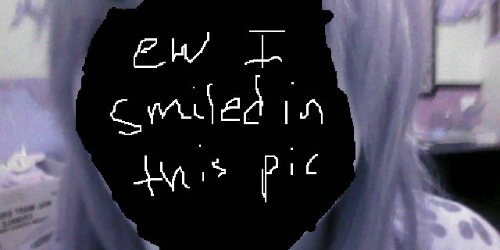 (thank you shrimp boy for holding that pic up) (when i read this just now i thought it said "your disgust" instead of "pure disgust" and i was like yeah that's accurate) (we can't have a picture where i'm smiling i'm too emo for that) who says im p u r e