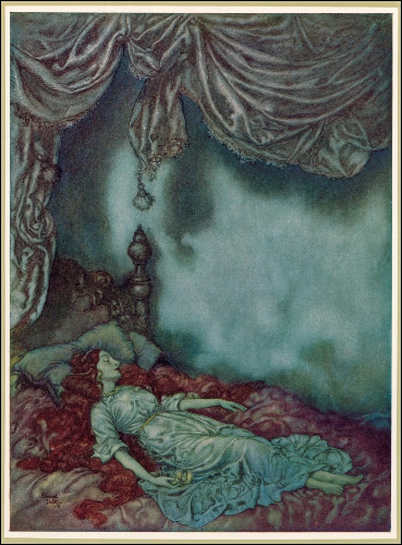 edmund dulac, illustration of poe's 'the sleeper' in the bells and other poems