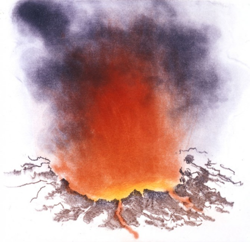 from the zen chapel comes that song by liszt, from volcanic holiday, an artist's book of the poem by james merrill our helicopter shaking like a fist, from volcanic holiday, an artist's book of the poem by james merrill