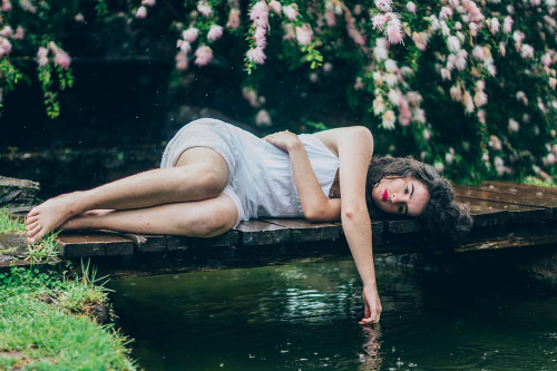 Moça bordada em flor.