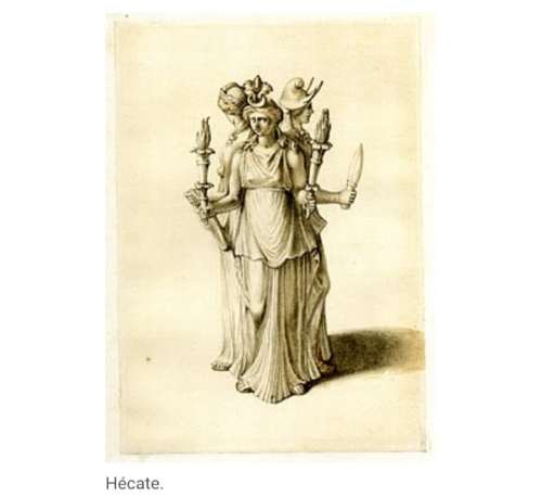 Es una diosa en la antigua religión griega, fue asociada con encrucijadas de tres caminos, caminos de entradas, luz, magia, brujería, conocimientos de hierbas, fantasmas, nigromancia y hechicería. También se le asocia con la luna y sus tres fases aunque esto es algo cuestionable pues ya existían diferentes diosas asociadas o que representaban a la luna en sí.
