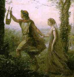 - Orfeo fue uno de los Argonautas que acompañaron a Jasón en la expedición en busca del Vellocino de oro. Cuando murió Eurídice, la mujer de Orfeo, este logró convencer a Hades y a Perséfone, ambos dioses del inframundo, para que la dejaran volver al mundo de los vivos con él. Ellos accedieron con la condición de que Orfeo no mirara atrás, pero un temor de que le engañaran y de que ella no estuviera detrás de él, hizo que tornase la vista antes de salir, por lo que ella tuvo que quedarse con los muertos y Orfeo se quedó allí para siempre con ella. Zeusconvirtió su lira luego en una constelación.