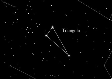 - Es una pequeña constelación del norte, cuyas tres estrellas más brillantes, de tercera y cuarta magnitud, forman un triángulo casi isósceles. A pesar de ser una constelación menor, el grupo de estrellas que forma Triangulum ya era conocido en la antigüedad y, debido a su parecido con la letra griega Δ tomó a veces el nombre de Delta o Deltotum.