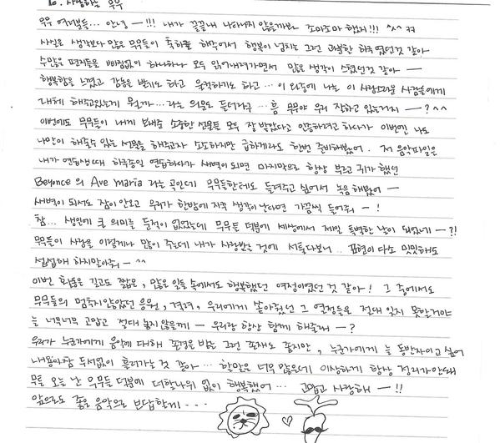 MooMoos… Hi—!!! I didn’t show up until the very last second. You were nervous, right? ^ㅅ^ ㅋㅋ To be honest, more MooMoos congratulated me than I expected so I was overflowing with happiness. Whilst reading your many letters, one-by-one without leaving any out, many thoughts came up — I felt happy, touched and even close to tears. I received all of your precious gifts and this time I want to give you all a gift that can only come from me. It’s a small gift and was done in a hurry, but I have prepared it for you. The music file is the song “Ave Maria” by Beyonce. It’s a song that I practiced all day, everyday when I was trainee. I wanted MooMoos to hear it so I recorded it— Listen to it on days when it’s gotten late and you can’t sleep —!