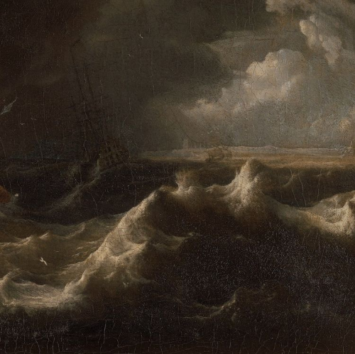 dutch merchant, details in a storm by ludolf bakhuizen (1670)