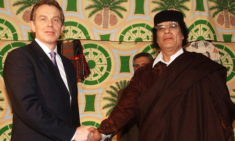 Tony Blair and Muammar al-Gaddafi (Libya). Queen Elizabeth II and Bashar al-Assad (Syria). Barack Obama and King Abdullah (Saudi Arabia). Tony Blair and Ariel Sharon (Israel). Tony Blair and Hosni Mubarak (Egypt). Margaret Thatcher and Augusto Pinochet (Chile). George Galloway and Saddam Hussein (Iraq).