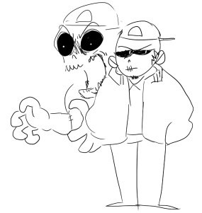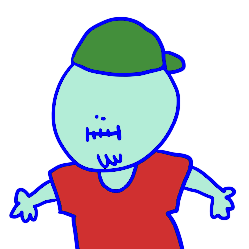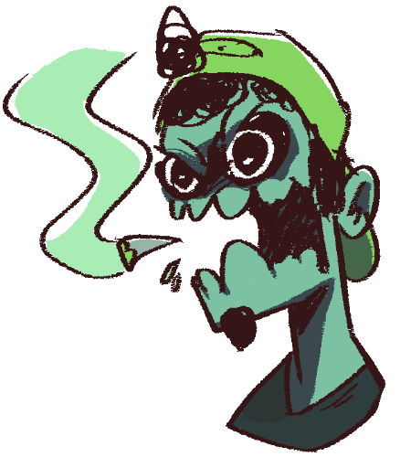 Appearance: Zombie with pale blue skin, chin beard, and wears hiptser skater clothes and junk. His right arm has been stitched back on.