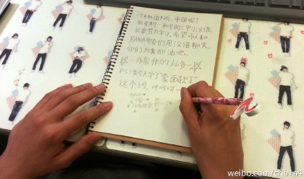 150504 - 我最近爱听"因为爱请"这首歌所以今天学了. 谢谢老师!!嘿嘿~^^ 【视频:我喜欢听中国歌~!!】