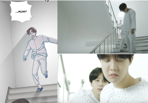 "Mom! Stop!" - Almost fell down the stair - Jimin helped him - "Jimin, let's get out of here"