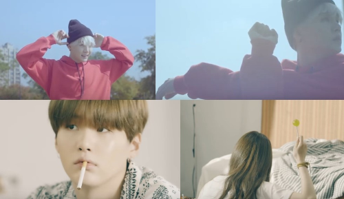fell asleep trying to figure out a melody and wake up distorted due to banging on the door - the girl took away his lighter and gave him lollipop - he wanted to make good songs because of her so he started working hard - the girl liked his song and they are supposed to play together at hospital - falls down the sofa reading a message from Jimin and runs to hospital