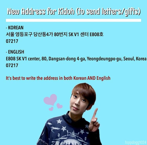 - If you would like to send a gift or letter to Kidoh, send it here: