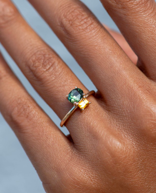 green sapphire and apricot sapphire, 7mmx5mm, $2,228, Bario Neal