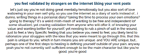 é que ela sentia falta de encontrar-se consigo mesma e sofrer um pouco é um encontro.