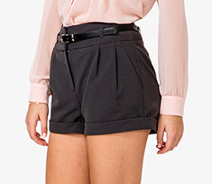 pleated shorts (grey, brown or olive)