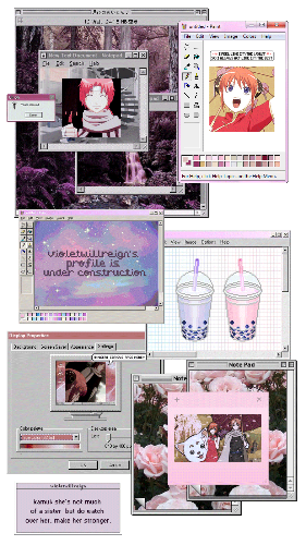 theme: kamui and kagura + aesthetic + tumblr + windows + pink + gif + retro + computer + gintama