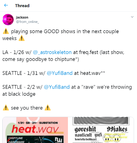 Information about the last astroskeleton show on his other account. (https://twitter.com/from_online_/status/1217217249078992896)